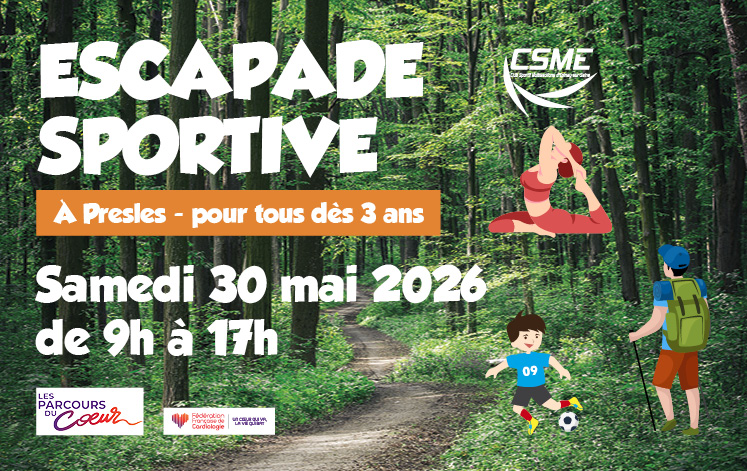 Le samedi 30 mai 2026, une escapade sportive est organisée à Presles, ouverte à tous dès 3 ans, de 9h à 17h.