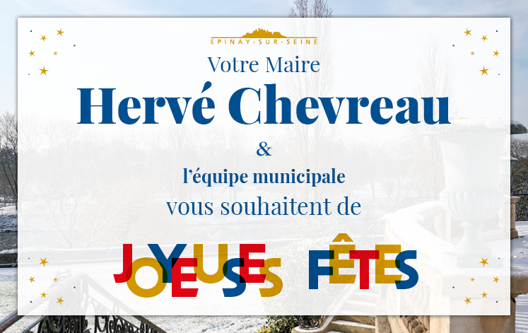 À l’occasion de cette fin d’année, le Maire Hervé CHEVREAU et l’équipe municipale d’Épinay-sur-Seine souhaitent à tous les habitants un Noël rempli de joie et de partage, ainsi qu’une nouvelle année riche en réussites et en moments précieux avec vos proches.