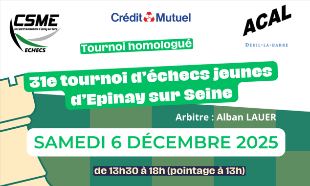 Gymnase Léo Lagrange De 13:30 à 18:00Épinay-sur-Seine accueille son 31e tournoi d’échecs jeunes, un rendez-vous incontournable pour les passionnés de stratégie et de réflexion !
