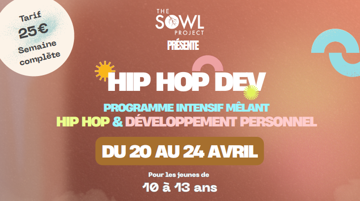 CSC des Écondeaux / Espace Joséphine Baker De 13:30 à 18:00HIP HOP DEV est un programme intensif d’une semaine avec un planning du lundi au vendredi destiné à un groupe de 12 jeunes adolescents de 10 à 13 ans. Ce programme propose des activités aux participants qui leur permettent d’associer l’activité culturelle à travers 2 éléments essentiels de la culture HIP HOP, la danse & la musique, en équilibre avec le développement personnel. L’objectif est que le participant acquiert des outils précieux qui favoriseront son évolution personnelle et de repartir avec des bases solides pour se projeter dans l’avenir dans de meilleures conditions.